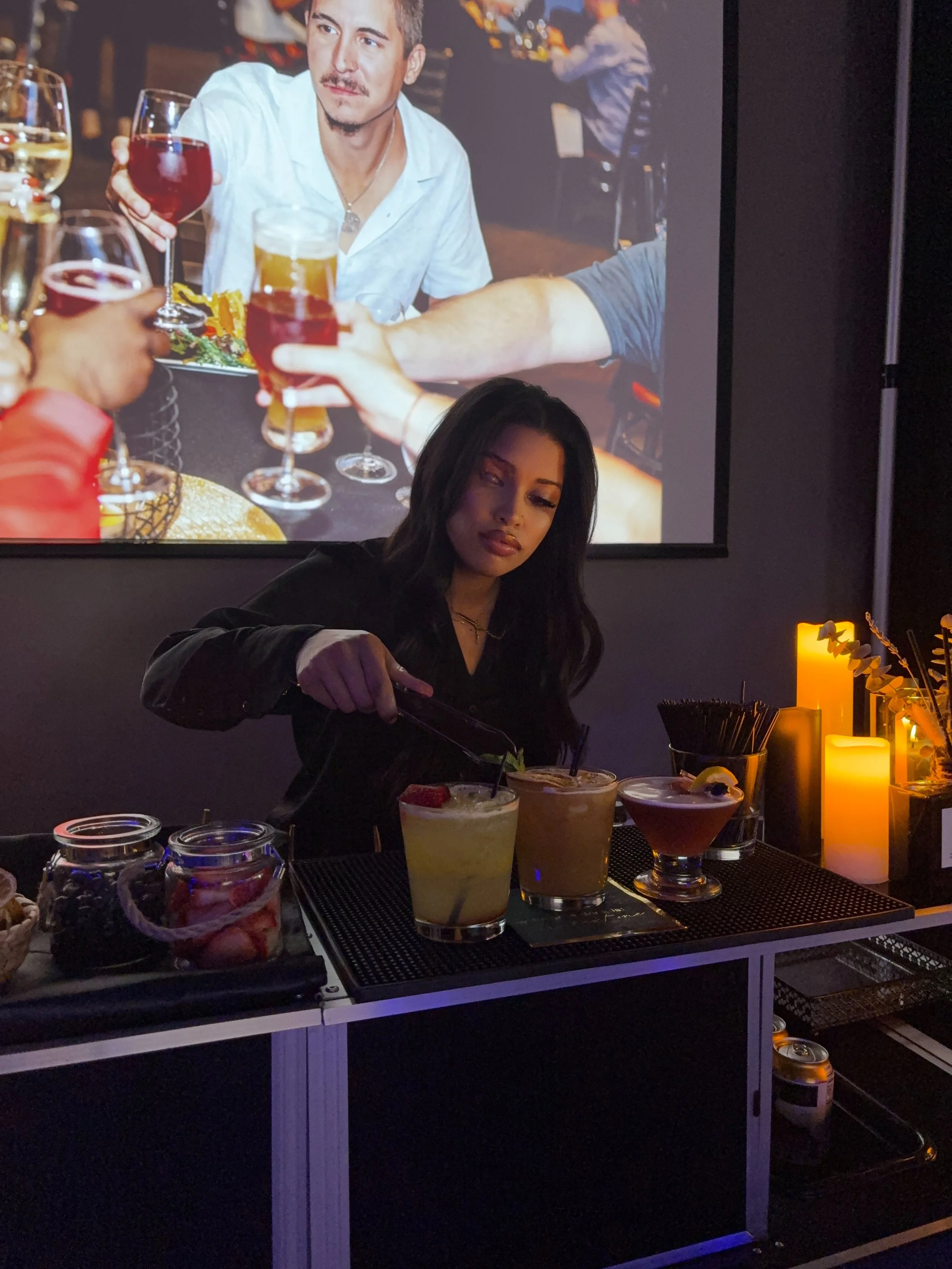Our bartenders are TIPS certified and fully insured for your peace of mind. Known for their speed, hospitality, and genuine smiles, they curate delicious cocktails that keep guests engaged and glasses full.